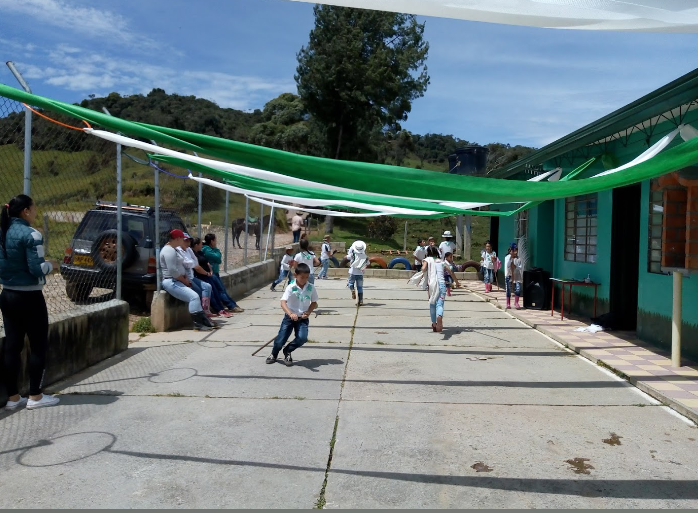 La señora Miriam Yepes como miembro de la comunidad y secretaria de la Junta de Acción Comunal consigue por donación libros, pupitres, implementos de cocina y algunos otros implementos necesarios para el trabajo.